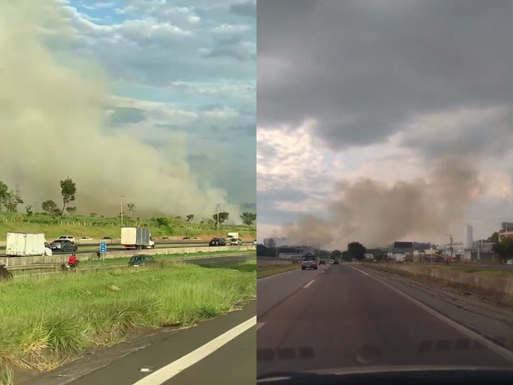 Incêndio atinge matagal às margens da Rodovia Anhanguera, em Campinas